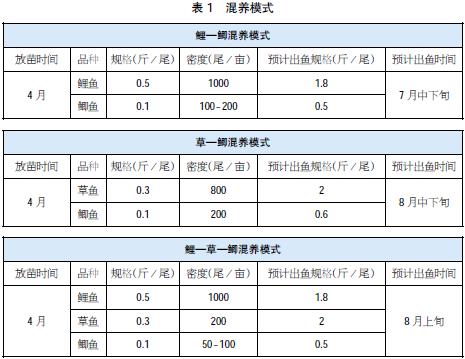 1. 放養模式設計(建議根據池塘條件合理選擇)(見表1)。