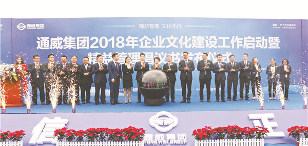 禚玉嬌總裁等領(lǐng)導(dǎo)共同啟動(dòng)了集團(tuán)2018年企業(yè)文化建設(shè)工作,并作重要指示。禚總指出,在劉主席的帶領(lǐng)下,通威將創(chuàng)業(yè)時(shí)期一直堅(jiān)持的艱苦奮斗工作精神和誠(chéng)實(shí)守信的商業(yè)思想豐富升華到作為一個(gè)企業(yè)的社會(huì)責(zé)任,并逐步形成了一套完整的通威企業(yè)文化體系,經(jīng)過不斷積淀、完善,成為了集團(tuán)堅(jiān)實(shí)的文化根基。