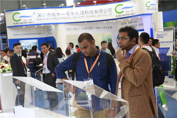 在通威展臺,劉漢元主席仔細查看通威所展示產品