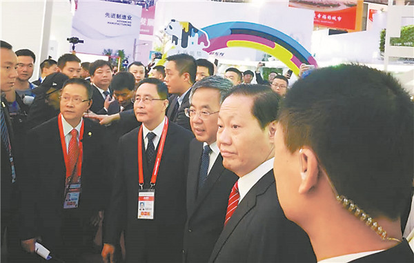 中共中央政治局委員、國務院副總理胡春華,四川省委書記彭清華等領(lǐng)導考察通威所在的“一帶一路”國際合作館