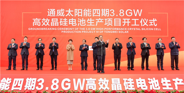 通威太陽能成都四期3.8GW高效晶硅電池項目、眉山10GW高效晶硅電池項目開工儀式
