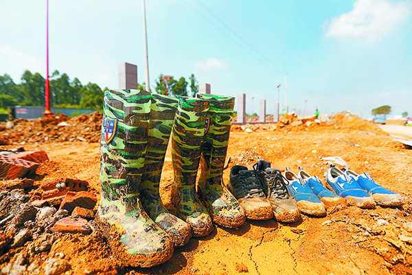 看著記者們“毫無準(zhǔn)備”,王剛拿來了膠鞋和礦泉水,指了指“你們這樣的鞋,進(jìn)去走上一圈就報(bào)廢了,工地上容易中暑,要多喝水。”做完準(zhǔn)備工作,王剛帶著我們,像平常一樣開始了工地巡查。“水排得如何了,一定要注意安全”“圍墻的勾縫要更飽滿一些。”每到一處,王剛都要仔細(xì)查看和了解,一旦發(fā)現(xiàn)不合格的地方,現(xiàn)場(chǎng)與施工方負(fù)責(zé)人員溝通協(xié)調(diào),提出整改意見。