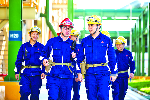 永祥新能源員工在生產一線討論工藝提升