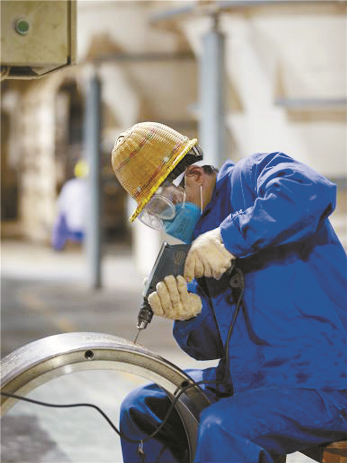 高明通威生產部制粒工孟偉仔細修復環(huán)模,將設備產能始終發(fā)揮到最佳狀態(tài)