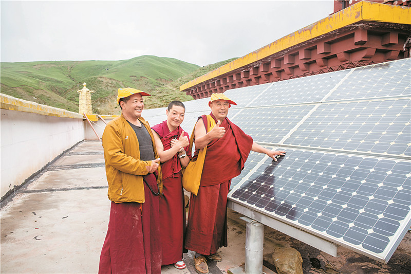 通威在理塘縣雄壩鄉(xiāng)若拉村建設(shè)的光伏電站,持續(xù)向周邊牧民和寺院無償提供清潔電力,有效解決了當?shù)赜秒婋y的問題
