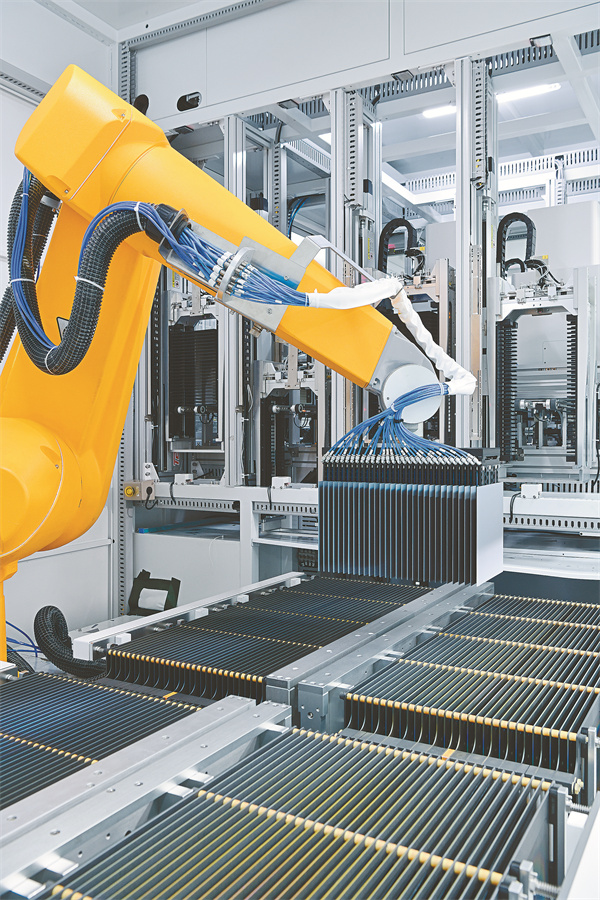 人民網報道指出,走進通合新能源(金堂)有限公司數字化車間,流水線配合智能機器人正在忙碌著。這個智能化的生產車間,每小時能生產15萬片電池片,源源不斷走下生產線的電池片由1GV智能小車運到倉庫發往全國各地。