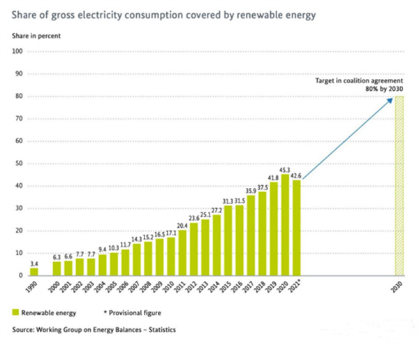 德國(guó)加速擴(kuò)張可再生能源產(chǎn)能背后,減少對(duì)俄羅斯化石燃料依賴是關(guān)鍵因素。哈貝克指出,“我們必須在短時(shí)間內(nèi)采取更多有力措施,要在2045年實(shí)現(xiàn)氣候中和,在2030年將可再生能源占比提高到80%”。德國(guó)總理朔爾茨則表示:“一個(gè)負(fù)責(zé)任、前瞻性的能源政策不僅對(duì)德國(guó)的經(jīng)濟(jì)和氣候至關(guān)重要,對(duì)我們的安全也至關(guān)重要。德國(guó)在可再生能源發(fā)展方面取得的進(jìn)展還需要加快,越快越好!”