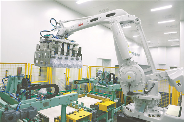 智慧化工廠的另一個重要體現是硬件設施的自動化。在永祥新能源二期項目的后處理工段,10多輛AGV小車來回穿梭,將還原車間生產的高純晶硅拖運到指定位置,整齊擺放。后端的破碎包裝環節,經機器破碎后的高純晶硅裝袋稱重后,自動包裝、裝箱一氣呵成。“整條破碎包裝線上只有2名員工,較之前的產線縮減了7-8名,進一步降低了人工成本。”后處理工段的主項負責人李富民告訴專項傳播小組。在多晶硅生產過程中,人工配置最多的環節是產品破碎包裝,隨著這條全自動驗證線的全面啟用和調試的深入進行,越來越多的高效率、低成本的自動化產線將不斷呈現。