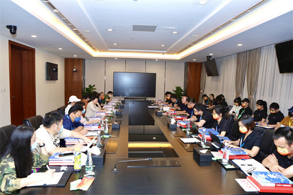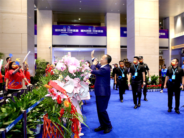 劉漢元主席向大會(huì)分會(huì)場員工揮手致意