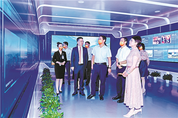 通威集團(tuán)禚玉嬌總裁,通威股份董事長、CEO謝毅陪同趙俊民常委參觀集團(tuán)體驗(yàn)中心