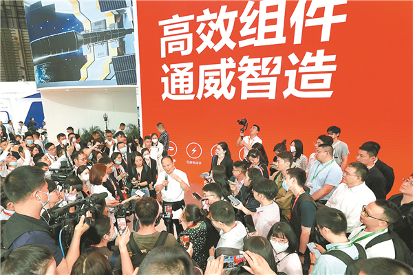 展會開幕首日,通威展區便人氣爆棚。期間,現場人氣持續火爆,來自海內外的領導嘉賓和參展觀眾紛紛駐足了解,“通威智造”“通威方案”獲各界人士頻頻點贊。