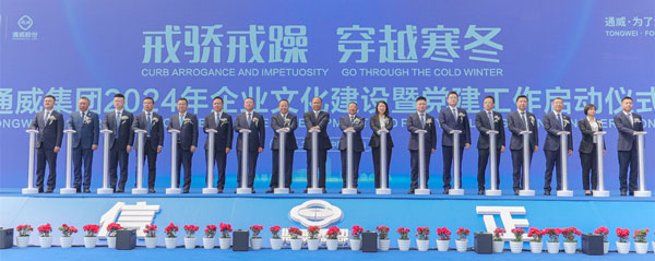 3月22日,通威集團2024年企業(yè)文化建設(shè)暨黨建工作啟動儀式在永祥股份樂山基地隆重舉行。啟動儀式以“戒驕戒躁 穿越寒冬”為主題,總結(jié)2023年企業(yè)文化建設(shè)成果,部署2024年企業(yè)文化建設(shè)工作。2024年面對新形勢、新挑戰(zhàn),通威始終堅持將優(yōu)秀文化與經(jīng)營管理相結(jié)合,號召全體通威人以更強的使命感和責任感,用心、用智慧、用只爭朝夕的精神工作,用強大的通威文化去創(chuàng)造更大更新的輝煌。