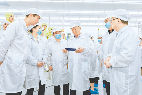 6月6日,通威全球創(chuàng)新研發(fā)中心首片電池順利下線,標志著中心建設(shè)取得了突破性進展。全國人大代表、全國工商聯(lián)副主席、通威集團董事局劉漢元主席出席儀式,通威集團禚玉嬌總裁,通威股份董事長、CEO劉舒琪陪同出席。通威股份總裁助理、通威太陽能科技有限公司總經(jīng)理蕭圣義,通威股份光伏首席技術(shù)官邢國強,通威太陽能總經(jīng)理周華等領(lǐng)導以及光伏技術(shù)部核心骨干代表、通威太陽能管理團隊代表共同見證了這一歷史性時刻。