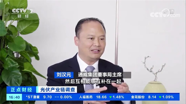 2022年全國兩會召開在即,在碳中和大背景下,以光伏為代表的可再生能源產業如何持續健康發展,受到各方強烈關注。2月28日,CCTV-2財經頻道《正點財經》播出《光伏產業鏈調查》專題報道。在集團品牌管理中心統籌下,央視記者就光伏產業如何降本增效、強化協同等熱點問題,采訪了十一屆全國政協常委、全國人大代表、通威集團董事局劉漢元主席。