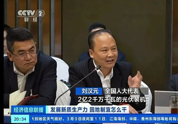 央視CCTV-4《中國新聞》、CCTV-2《經濟信息聯播》播出劉漢元代表發言畫面