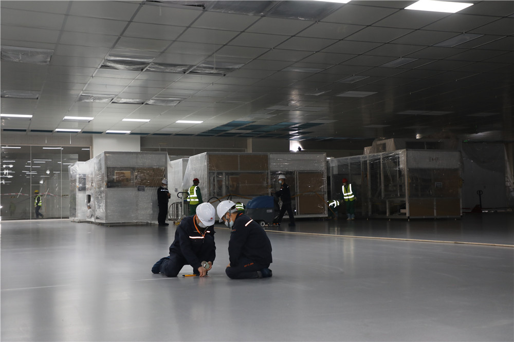 2020年4月9日,工人們緊張施工,為投產做最后準備