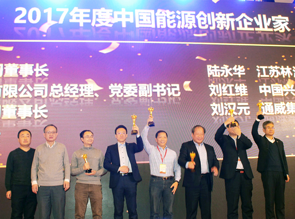 劉漢元主席榮獲“2017年度中國能源創(chuàng)新企業(yè)家”殊榮,通威股份光伏事業(yè)部總裁陳星宇代為領(lǐng)獎