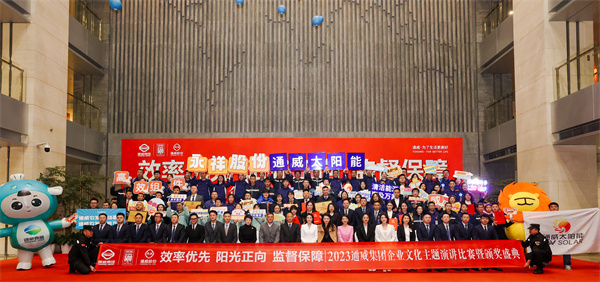 12月22日,“效率優(yōu)先 陽光正向 監(jiān)督保障”2023通威集團(tuán)企業(yè)文化主題演講比賽暨頒獎(jiǎng)盛典在通威國際中心隆重舉行。盛典現(xiàn)場,來自通威各板塊、各分子公司的員工代表作主題演講,四川電視臺(tái)、成都電視臺(tái)主持人帶來精彩朗誦和點(diǎn)評(píng)。盛典現(xiàn)場特別頒發(fā)優(yōu)秀征文獎(jiǎng)、優(yōu)秀演講獎(jiǎng),并進(jìn)行2023年通威集團(tuán)“企業(yè)文化建設(shè)示范基地”授牌儀式。四川廣播電視臺(tái)主持人楊林、程玥擔(dān)任盛典主持。