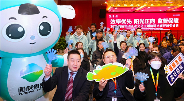 當(dāng)天,四川省工商聯(lián)原副主席、四川省委省政府決策咨詢委員、四川大學(xué)商學(xué)院教授、企業(yè)戰(zhàn)略管理博士導(dǎo)師李光金,四川省十佳節(jié)目主持人、四川廣播電視臺(tái)全媒體新聞中心主任助理、《四川新聞聯(lián)播》主播葛曉霞,四川省十佳節(jié)目主持人、四川廣播電視臺(tái)主持人田川,四川廣播電視臺(tái)十佳主持人、《四川新聞聯(lián)播》主播王楚涵,四川省十佳節(jié)目主持人、成都市十佳主持人、《成視新聞》主播趙亮,成都廣播電視臺(tái)全媒體新聞中心《成視新聞》主播安冉,全國人大代表、全國工商聯(lián)副主席、通威集團(tuán)董事局劉漢元主席,通威集團(tuán)禚玉嬌總裁,通威股份董事長、CEO劉舒琪,通威集團(tuán)黨委書記、副總裁、集團(tuán)企業(yè)文化建設(shè)專項(xiàng)工作小組執(zhí)行組長黃其剛,通威集團(tuán)黨委副書記、通威股份監(jiān)事會(huì)主席鄧三,通威集團(tuán)副總裁孟利、財(cái)務(wù)總監(jiān)肖吉華,通威集團(tuán)黨委組織委員、通威股份人力資源總監(jiān)易繼成,通威股份金融總監(jiān)邱艾松,通威集團(tuán)黨委宣傳委員、集團(tuán)企業(yè)文化建設(shè)專項(xiàng)工作小組執(zhí)行副組長、集團(tuán)品牌管理中心副主任崔維順,集團(tuán)企業(yè)文化建設(shè)專項(xiàng)工作小組執(zhí)行副組長、通威股份行政總監(jiān)馮暢,通威集團(tuán)工會(huì)主席王圖,通威集團(tuán)團(tuán)委書記梁田等領(lǐng)導(dǎo)嘉賓出席大會(huì)。集團(tuán)、股份管理總部,通威農(nóng)發(fā)、永祥股份、通威太陽能(電池)、通威太陽能(組件)、通威新能源、通威食品、通威地產(chǎn)、通宇物業(yè)、通威微電子、通威傳媒、通威商管等600余人現(xiàn)場參會(huì),全球通威人通過現(xiàn)場直播觀看比賽盛況。