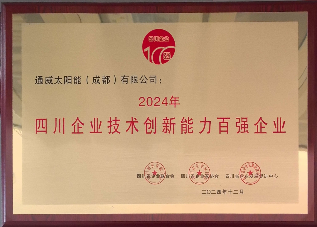 通威太陽能(成都)有限公司榮獲“2024年四川企業技術創新能力百強企業”殊榮