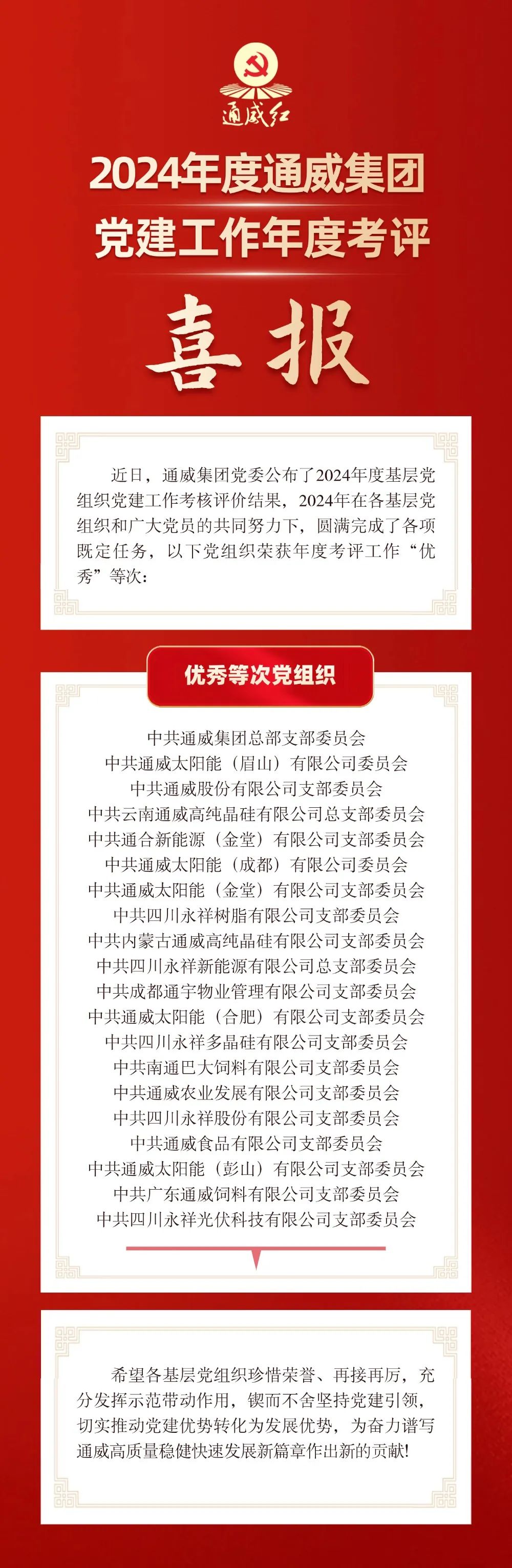 喜報!通威集團(tuán)基層黨組織榮獲年度黨建工作考核優(yōu)秀等次!