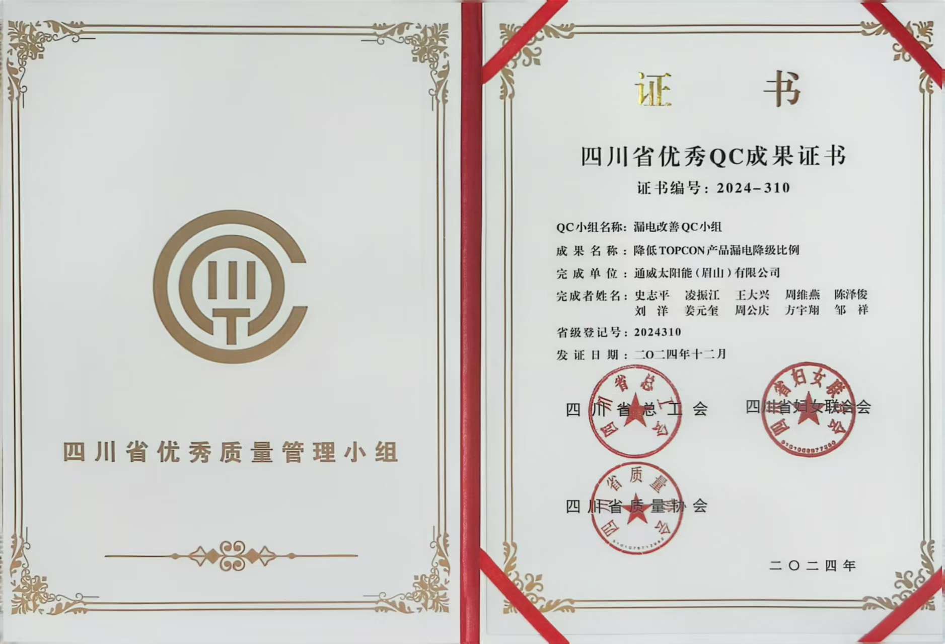 通威太陽能(眉山)有限公司 榮獲三項四川省優(yōu)秀QC成果獎