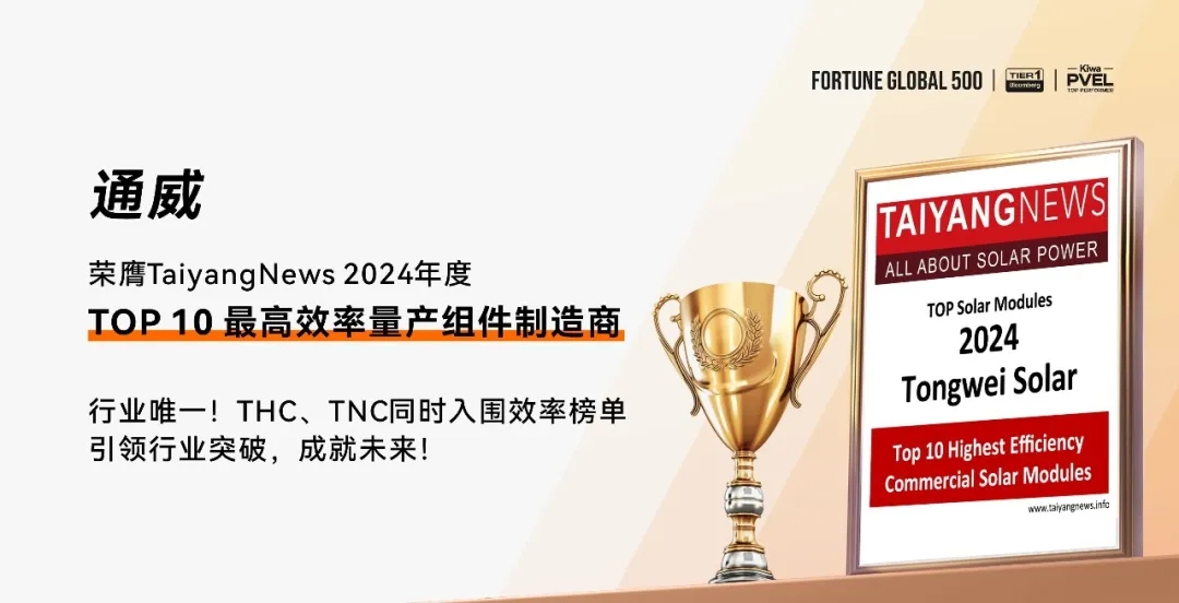 TNC、THC組件雙入圍!通威榮登TaiyangNews2024年度“TOP 10最高效率量產組件制造商”榜單