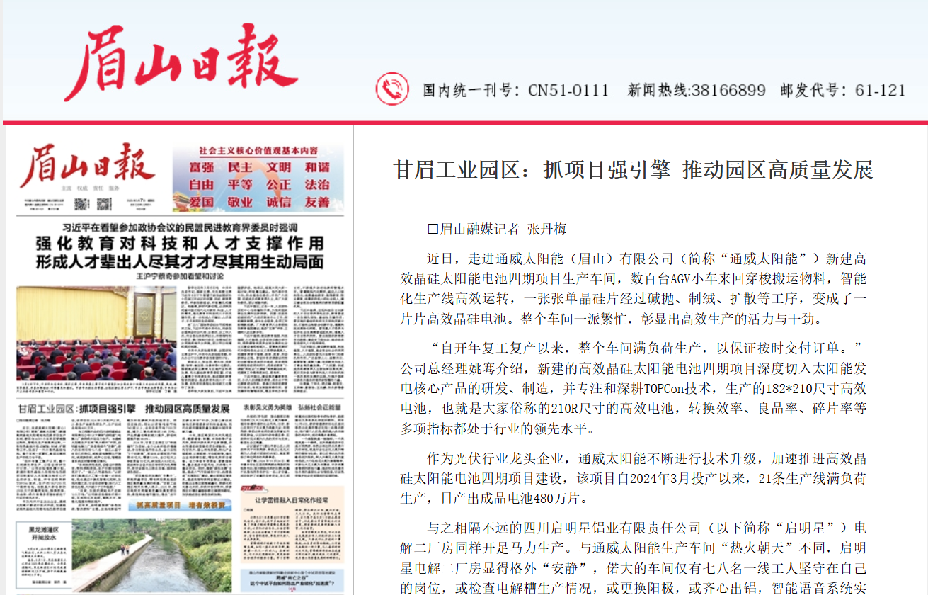 《眉山日報》聚焦通威太陽能(眉山)有限公司全力沖刺開門紅