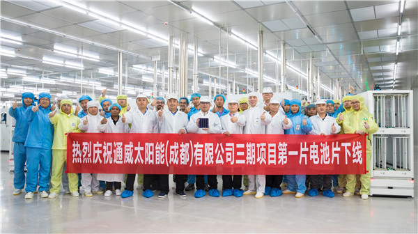 通威太陽(yáng)能成都三期第一片“智能制造”高效晶硅電池片順利下線