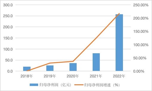 通威股份品牌價值之所以如此高漲,還是源于其傲人的經營業績。最新年報顯示,通威股份2022年營業收入輕松突破千億大關,達到1424.23億元,較2021年增長了119.69%;2022年歸母凈利潤達到257.26億元,較2021年更是翻了兩倍多,增長率高達217.25%。