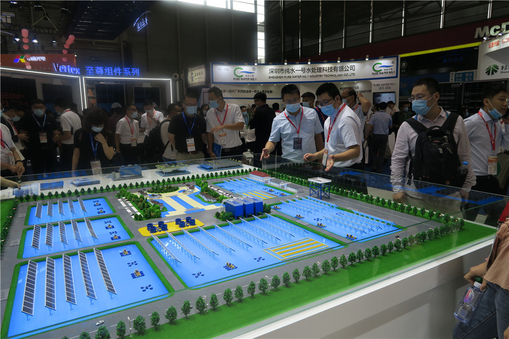 展商觀看沙盤模型,體驗通威“漁光一體”魅力