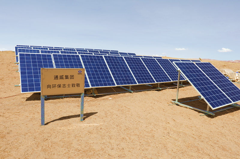 2018年5月,通威集團首次挺進青藏“無人區”,向青藏綠色驛站公益捐贈離網光伏發電系統,開創世界屋脊光伏電站捐贈先河。截止目前,青藏綠色驛站三座離網光伏電站已持續運行近一年,守護了青藏高原的綠色和光明,給驛站志愿者的工作帶來極大便利。今年4月,通威集團再度挺進青藏“無人區”,為長江源班德湖野生動物觀測站捐贈十余套離網光伏發電系統,用于綠色江河組織班德湖營地及周邊的拍攝設備和無線發射系統供電,在提高野生動物監測、保護工作科技含量的同時,向科學家提供動物種群數量調查和動物行為研究的影像資料,用實際行動再次為推動長江源生態環境保護工作貢獻力量。