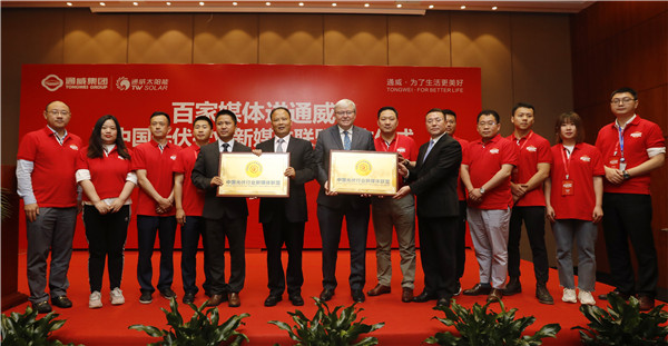 儀式上,陸克文閣下與劉漢元主席分別為企業(yè)代表、聯(lián)盟秘書長(zhǎng)、通威集團(tuán)副總裁黃其剛以及媒體代表、聯(lián)盟執(zhí)行秘書長(zhǎng)、黑鷹光伏總編輯李文友授牌,在10家聯(lián)盟發(fā)起媒體代表以及現(xiàn)場(chǎng)嘉賓、媒體同仁的共同見證下,中國(guó)光伏行業(yè)新媒體聯(lián)盟正式成立!
