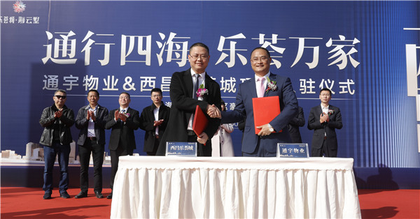 11月30日,成都通宇物業(yè)管理有限公司入駐西昌樂薈城項目簽約儀式在西昌邛海之濱隆重舉行。西昌市房管局副局長李曉明,西昌市高枧鄉(xiāng)派出所所長楊正鵬,中國銀行涼山州分行副行長張曉東,西昌市農(nóng)業(yè)銀行副行長林媛,浙商銀行涼山分行行長趙之熠,通威集團(tuán)副總裁、西昌華地恒通投資有限公司董事長管亞偉,通威集團(tuán)副總裁黃其剛,通宇物業(yè)總經(jīng)理孫斌,西昌樂薈城營銷總監(jiān)邱晉等領(lǐng)導(dǎo)出席活動。西昌樂薈城業(yè)主代表,通宇物業(yè)、樂薈城員工代表,以及權(quán)威主流媒體近200人現(xiàn)場見證了這一重要時刻。