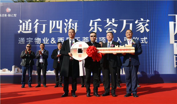 簽約儀式環(huán)節(jié),在現(xiàn)場領(lǐng)導(dǎo)嘉賓的共同見證下,通宇物業(yè)總經(jīng)理孫斌與樂薈城營銷總監(jiān)邱晉代表兩家公司現(xiàn)場簽訂戰(zhàn)略合作協(xié)議,并舉行了隆重的“管理金鑰匙”交接儀式,標(biāo)志著通宇物業(yè)正式入駐西昌樂薈城項目。