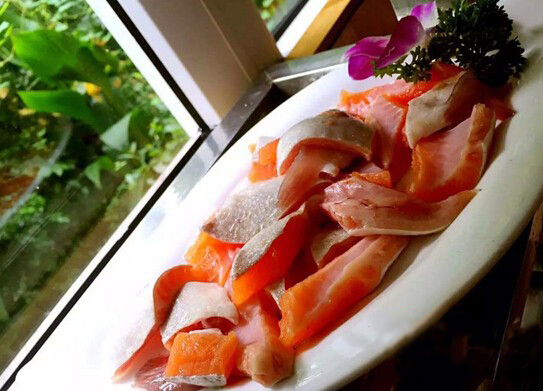 消費(fèi)者代表、媒體記者組成的體驗(yàn)團(tuán),有幸在這里品嘗到了豐盛的三文魚盛宴。